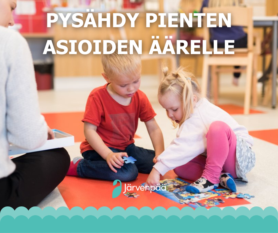 Järvenpään varhaiskasvatuksessa iloitaan ja pysähdytään arjessa pienten äärelle! Järvenpään varhaiskasvatuksessa myönteinen vuorovaikutus sallii ja ruokkii kokeilukulttuuria. Meillä osallistutaan ja kokeillaan uusia, joskus haastaviakin asioita yhdessä sinnikkäästi!